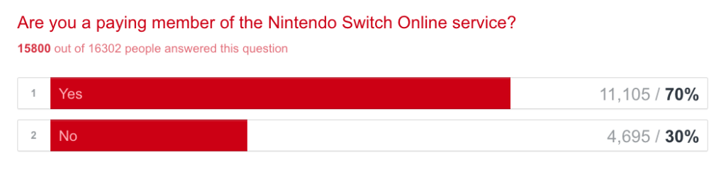 After a few delays, the Nintendo Switch Online service launched proper in September of 2018. Last year I asked how many respondents would be willing to sign up to such a service, and around 70% of respondents said they would.