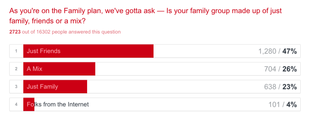 Of these members, the majority have an Annual membership. A significant number of folks are part of a Family plan - where you can share your membership with up-to eight others. It seems a fair few are taking advantage of this as a way to get a cheaper online membership.