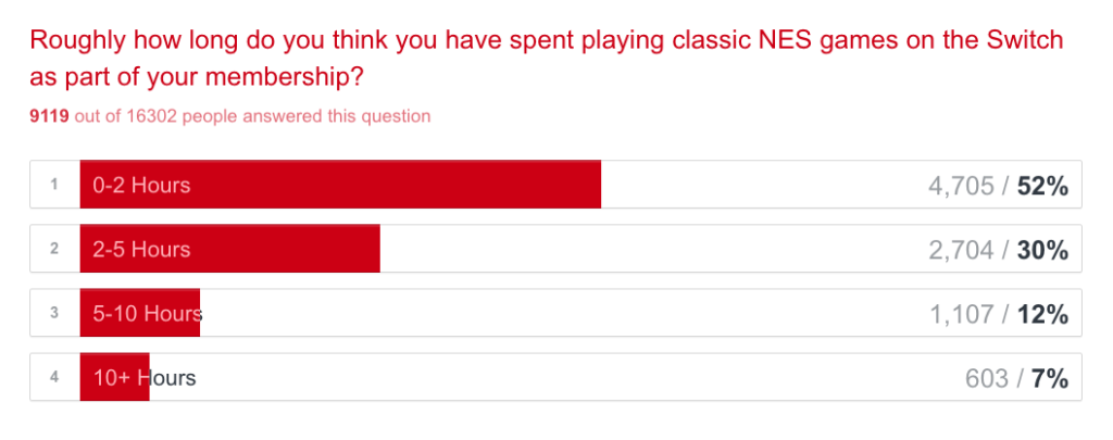 As part of the Nintendo Switch Online membership you get access to a growing library of classic Nintendo Entertainment System (NES) titles. Over 80% of Switch Online members said they have played some of the retro games on offer. Although for the most part the playtime here is pretty low overall, with most having only played them for less than two hours.