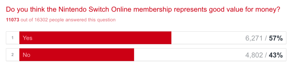 Finally, I asked about whether people thought the Nintendo Switch Online service represented good value. Over half did, but it leaves plenty of room for improvement.