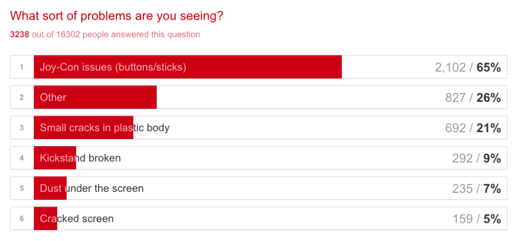 Of those who did face problems, the issues were usually either software crashes or some battery related issue. However, the biggest complaint from Switch owners by far was that of Joy-Con ‘drift’. A sizeable number of responses outlined this as a problem. Here’s an article from iMore which may help in being able to fix it.