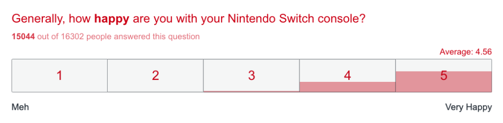 Overall, people seem pretty happy with their Nintendo Switch. When I asked them to rate it out of 5, the average score was 4.5.