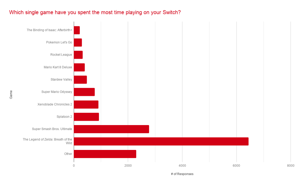 The ‘Specific Game Launch’ option on this question sheds some light on what you might consider to be ‘system sellers’. With data from around 850 responses, here are the games that drove folks to go and pick up a Switch: