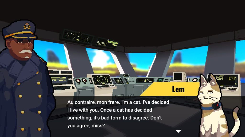 The plot is straightforward enough and doesn’t hang around. You’ll typically run through a witty interaction with your crew (which includes a talking cat by the way), the occasional exchange with the bad guys, and you move on. You’re in and out of missions quick enough, with the narrative told in a quick and punchy style.