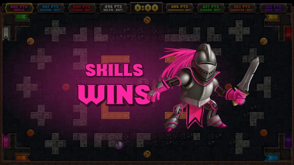 This mix of constantly spawning weapons, rhythm alternating power-ups, and fast-paced respawns make for a super satisfying party game experience. It’s a pretty straightforward proposition really: grab a weapon, slay some knights, score high points, be crowned the victor.